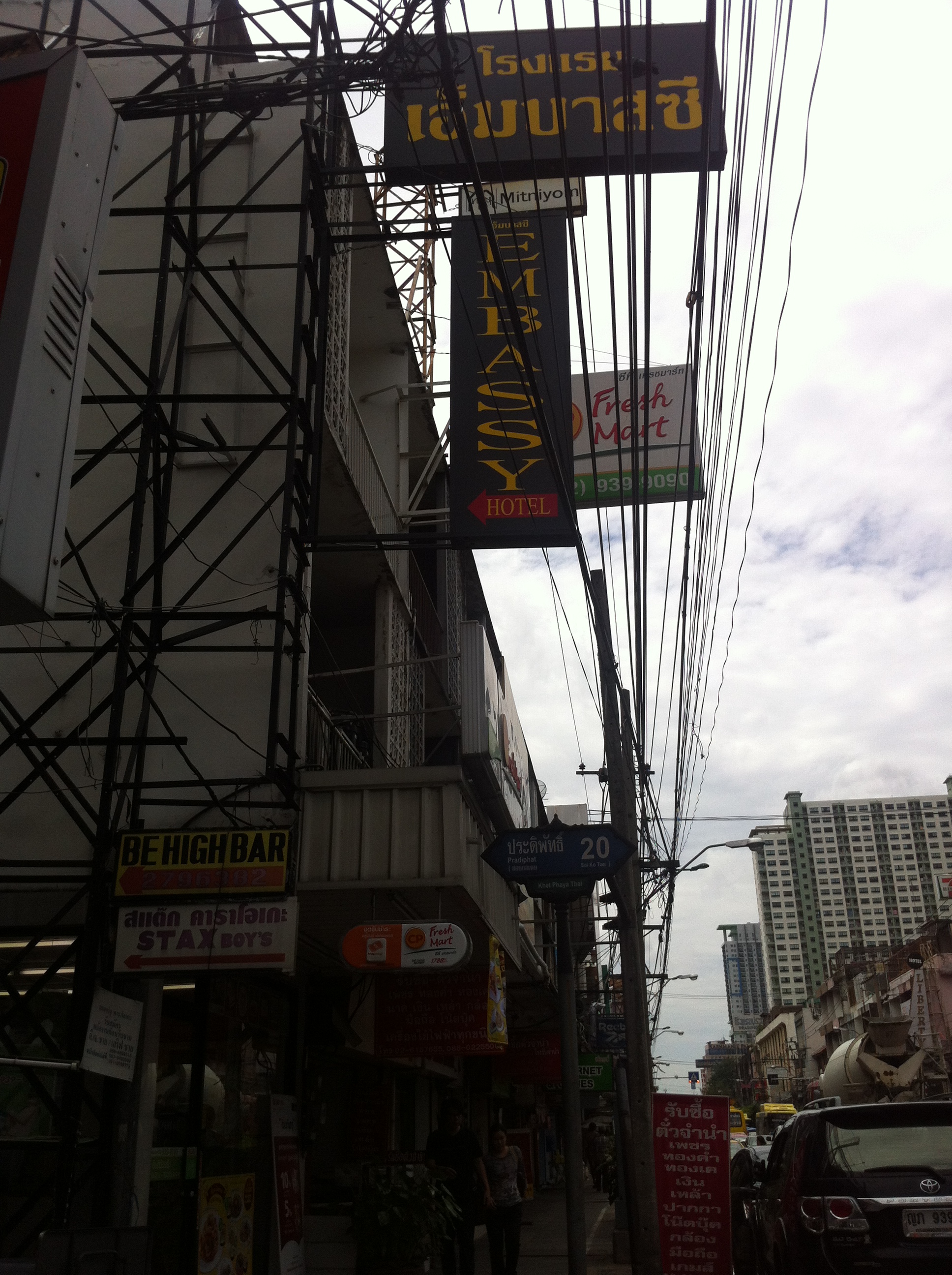 I woke up again around 10am (Thailand time) and decided I should start the day. I showered and threw on a dress. I did not know if Pi Loong was going to walk back to the hotel or if I was going to need to call her so I left her a note to tell her I had just left for a quick walk. I think it took me 5 mins of humming and hawings as to whether or not I should wear a scarf. (I laugh at this now! But while I was standing in my air conditioned room I really was finding it hard to decide if I needed it or not). AS SOON AS I OPENED the hotel door I smiled as to having made the decision to leave the scarf at home! IT WAS HOT. DRY hot heat. I left the house on a mission to find a sim card for my phone and a wireless internet hot spot. My iphone was easily locating the wireless spots but not being too friendly about connecting to them. I got really frustrated at how fast my battery was dying struggling to connect to a wifi source. I successfully communicated to the 7 Eleven attendant that I needed a sim card for my phone. WHAT I lacked to understand was that I needed to buy a top up card as the sim card was simply a phone number. After sorting that out I still wasn’t able to get internet on my phone. I walked up the street for ages. I debated crossing the street but decided against it for my first day in Bangkok. Baby steps to this BIG ADVENTURE. I really did not want to be using my medical insurance on my first day!